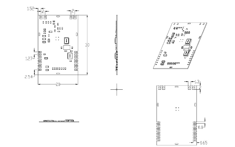 6.EL-1648A無(wú)線(xiàn)模組的外形尺寸圖(單位:mm)
